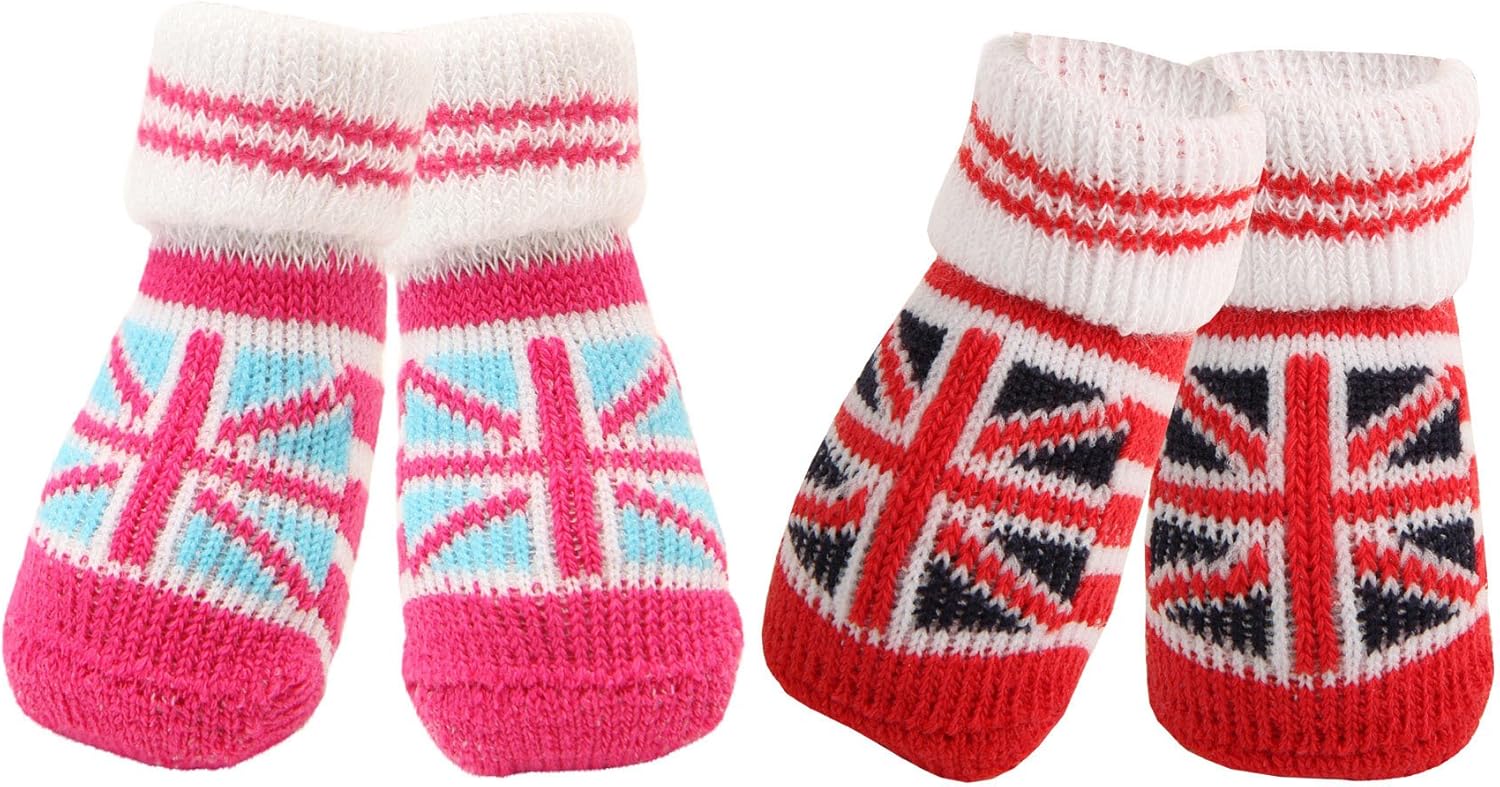 New Puppia dog socks. This is a set of four socks with skid free pads to help prevent skidding and sliding on slippery surfaces. This set of Puppia Union Jack socks will keep your dog from sliding on slippery surfaces. These double clinching socks won't slide out and provide a secure fit on your dog's paws. Available in Pink and Red in sizes ranging from Small to Large. These socks were made for small/medium breeds only. Please refer to size chart image for sizing instructions.