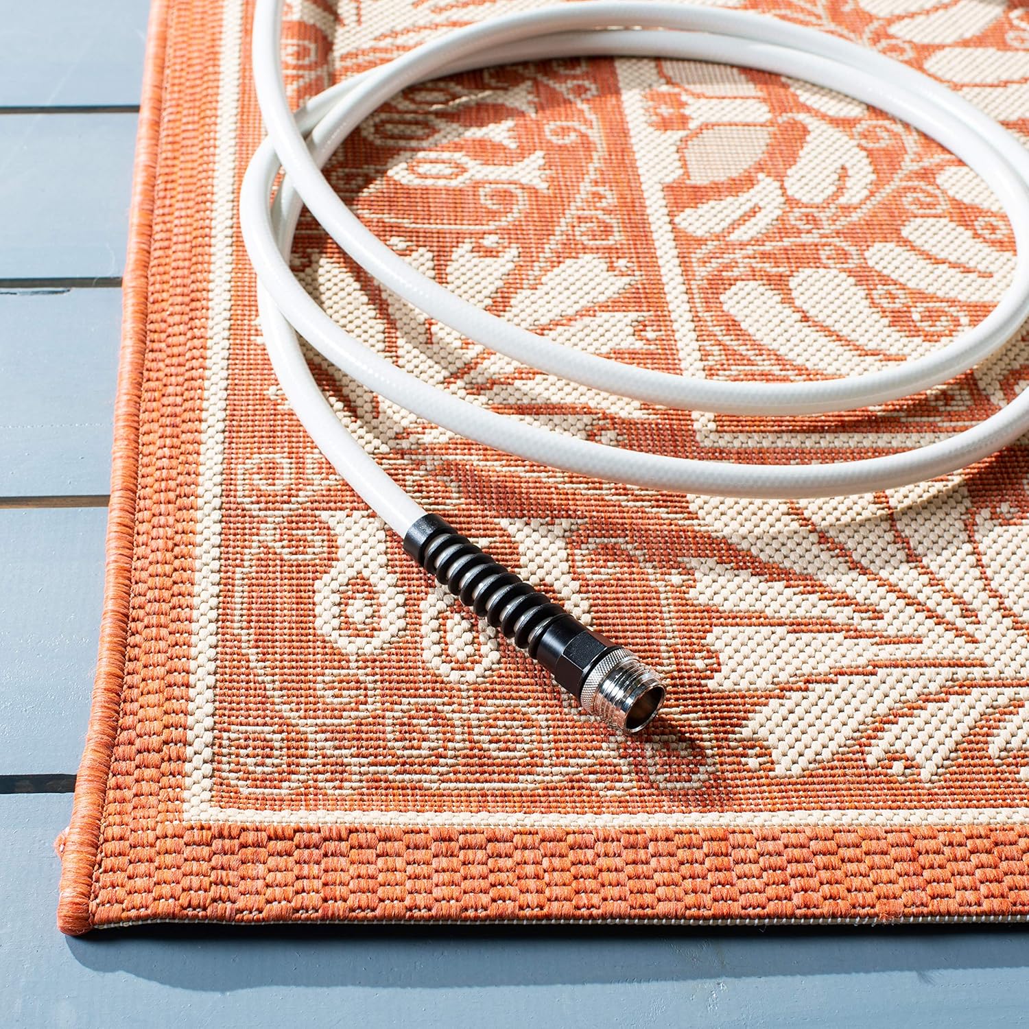 Safavieh's Courtyard Collection is inspired by timeless designs crafted with the softest polypropylene available. This rug is crafted using a power-loomed construction and features a main accent color of coffee. Perfect for any backyard, patio, deck or poolside, this rug will instantly turn your outdoor area into a resort-style entertaining space. Finely crafted for seasons in the sun and years of open-air gatherings, the Courtyard rug instantly elevates any interior or exterior décor to a space of visual inspiration. More than a decorative enhancement, and easy carefree maintenance. With its style, practicality, and transitional decorating options, this rug extends an open invitation to gather and may just spark impromptu parties. Primary Color: CoffeePile Height: 0.25 inches Material: Polypropylene Style: Contemporary Construction: Power-loomed Rug Type: Indoor/Outdoor Feature: Latex Free Rug Dimensions: 2'7" x 5'