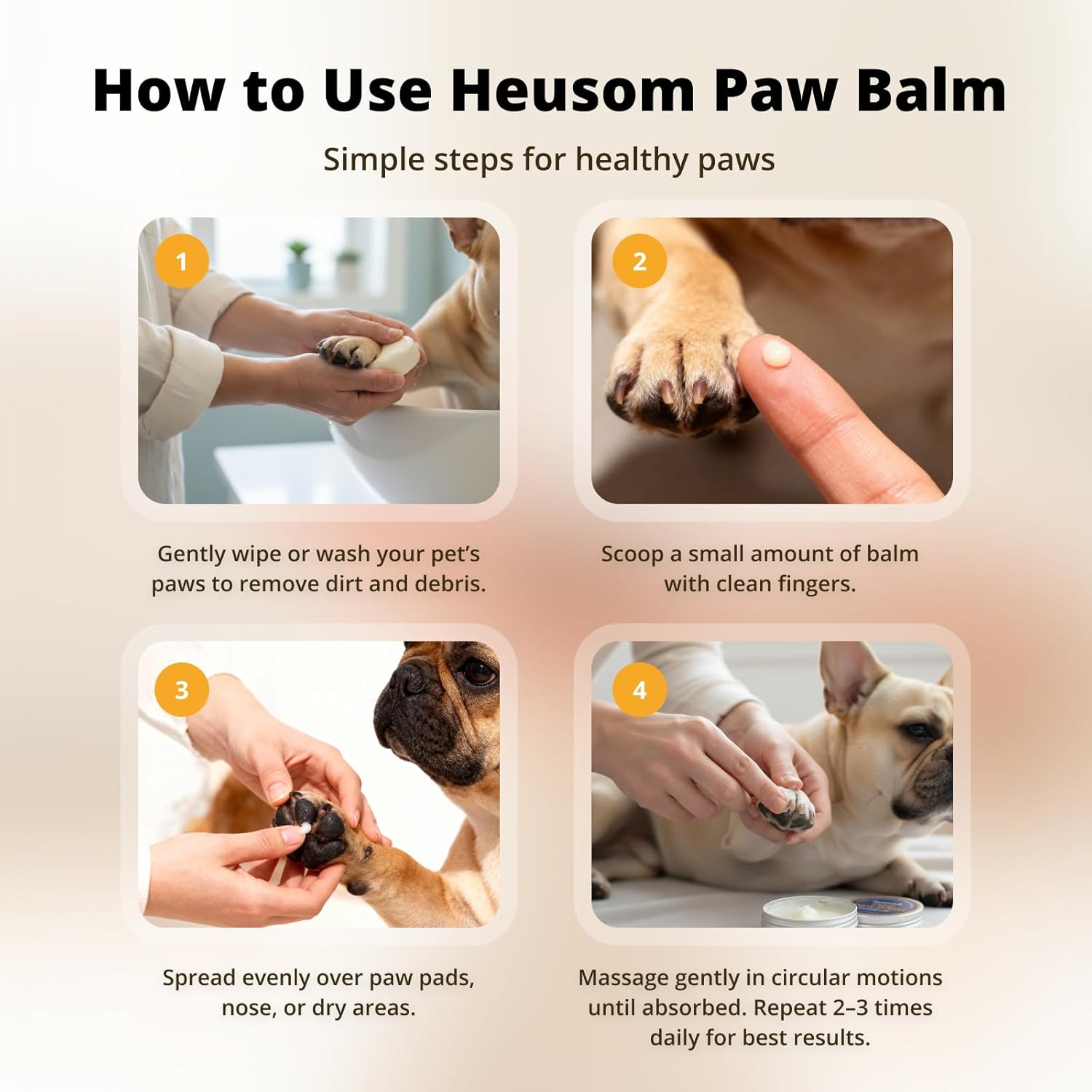 Keep your pet’s paws healthy, neat, and comfortable with our nail grinder, a safe and gentle alternative to traditional clippers. Ideal for your cat, dog, and even small animal like a rabbit, guinea pig, and bunny, this accessories set includes everything you need for easy home grooming. The durable design works perfectly for puppies, kittens, chihuahuas, or larger breeds, making it ideal for both indoor and outdoor pets. With a smooth, low-vibration motor and a precision bit for accurate shaping, you can trim and polish nails without the risk of bleed or discomfort. Whether you need to maintain claws for small breeds or gently smooth the toenail edges of big dogs, the sharp yet pet-safe grinding wheel makes the job quick and stress free. Give your pet the gentle, natural care they deserve with the Heusom Organic Paw Relief Balm. Formulated with safe, human-grade ingredients like coconut oil, beeswax, and shea butter, this balm is designed to soothe, moisturize, and protect sensitive areas such as paws, pads, noses, elbows, and even dry spots on the skin. Unlike harsh lotions or pastes, our balm is non-toxic, lick-safe, and free from irritants, making it safe for everyday use with dogs, cats, puppies, and senior pets.