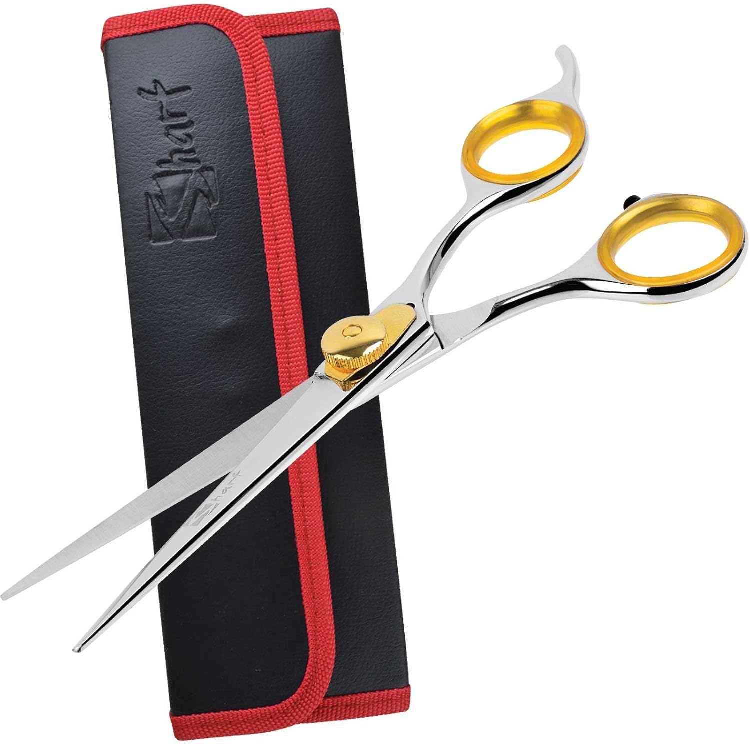 Sharf Gold Touch Pet Grooming Shears, 7.5 Inch Curved Shears, 440c Stainless Steal Japanese Shears, Pet Grooming Curved Scissors & Dog ShearsSharf Gold Touch 7.5 Inch Curved Dog Grooming Shears is what you need to achieve that perfect, professional dog groom. Perfect fit for Groomers, Vets or Personal use.Dog grooming scissors curved are great for shaping; like tail & paws. Curved shears are also used for those hard to reach areas. Each Dog Shear is finished in a shiny polish with gold accent screw and screw plate. Gold, rubber comfort rings complete the fine look and gives you the grip and comfort making this your favorite curved shears you ever had.Made of top quality 440c Japanese Stainless Steal for ultimate sharpness and ease of sharpening. Each Dog Shear comes complete in a snap close case for ease of care and storage.