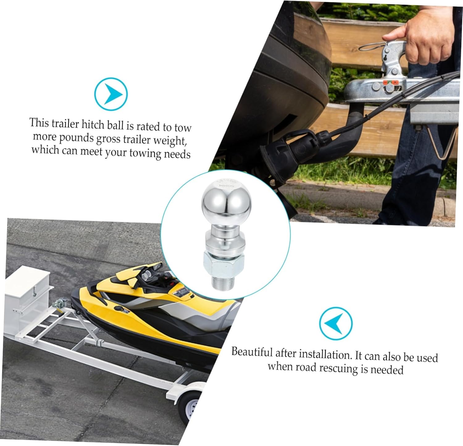 Package List 1 x Trailer Hitch Ball Features -Material: Chrome-plated, galvanized replacement tow ball. -RATED: 5000lbs hitch connector. -Size: About 12.00X5.00X2.20cm/4.72X1.97X0.86in trailer hitch tow ball. -Color: Silver trailer accessories. - The trailer weight is large. Perfect for towing trailers, caravans and many more tow hitch. - With easy installation, and it your be stylish and cool in the crowd trailer parts. - Establishes a secure connection between your major vehicle and the additional trailer boat trailer parts. - Manufactured from galvanized and chrome-plated, also to rain and dirt trailer ball. - Good workmanship details, not easy to , sturdy and durable, can serve you well trailer balls.Goods Descriptiontrailer parts This trailer hitch ball is well-crafted and durable, and .hitch connector It has superior craftsmanship, reasonable design, compact and practical, and can be widely used in trailer, yacht, , , etc.trailer hitches & balls This is a very professional, practical tow ball, which will bring you a good experience