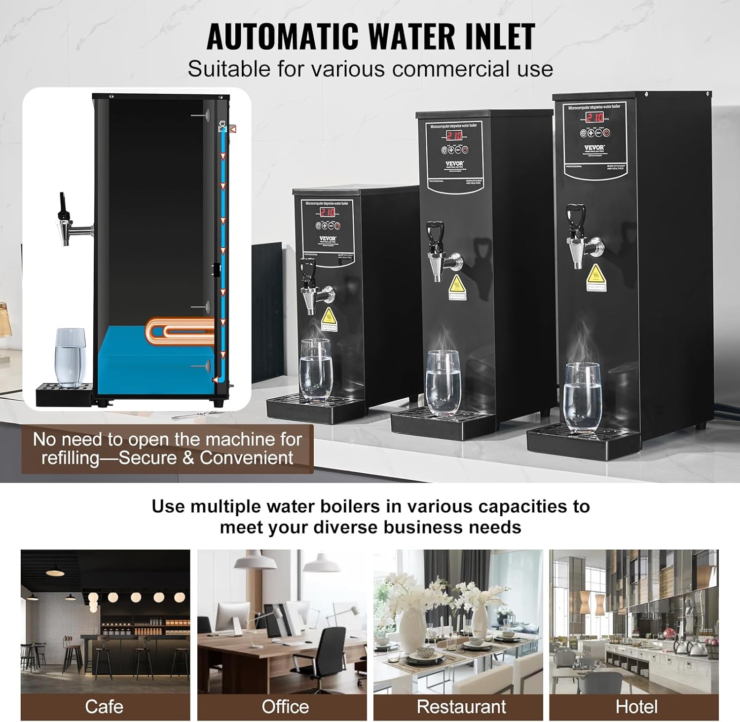 | Item Type Name | Electric Hot Water Dispenser with 316 Stainless Steel Heating Tube, 1500W Step-by-step Fast Heating 50L per Hour Hot Water Boiler, for Coffee Tea Restaurant Office |