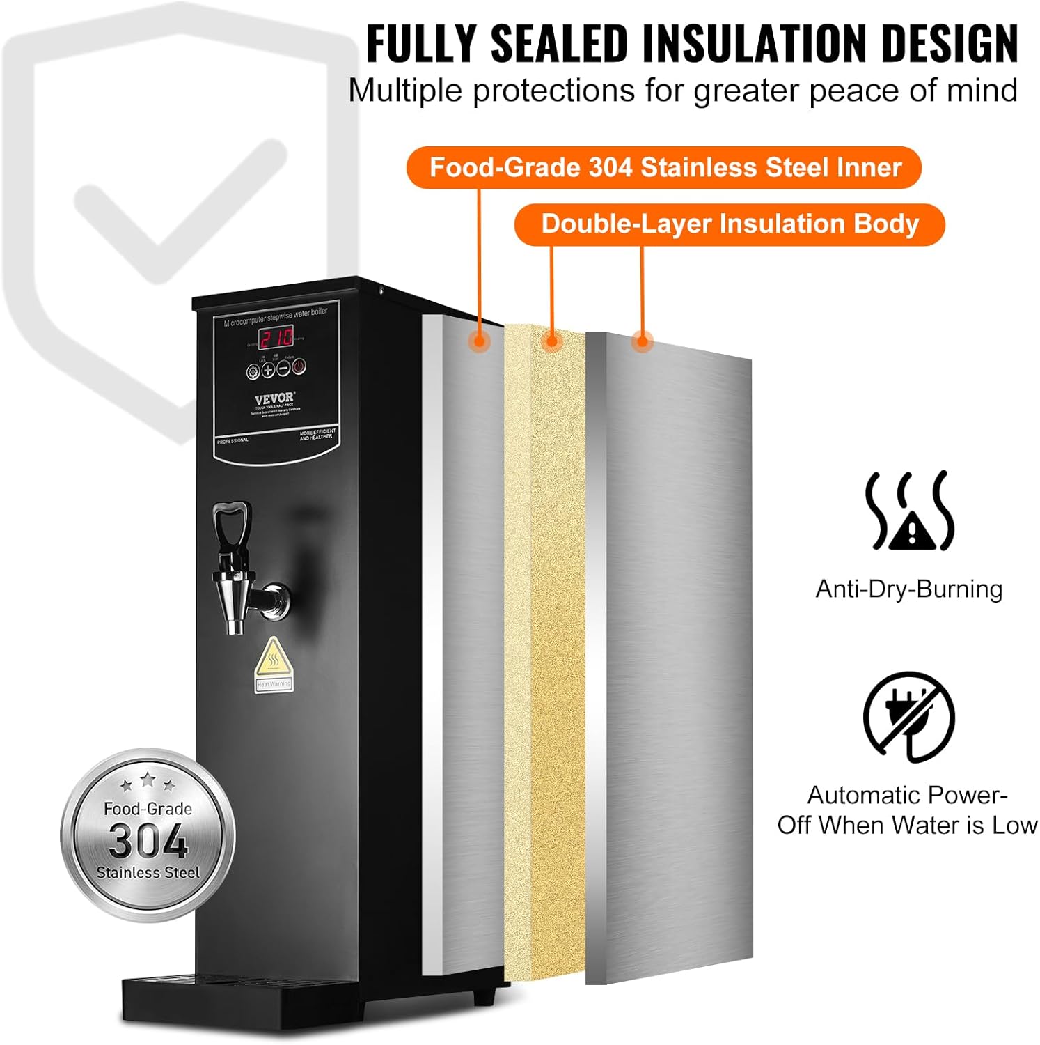 | Included Components | 1 x Commercial Water Boiler, 1 x Mounting Bracket, 1 x Water Drip Tray, 1 x Water Inlet Pipe, User Manual |