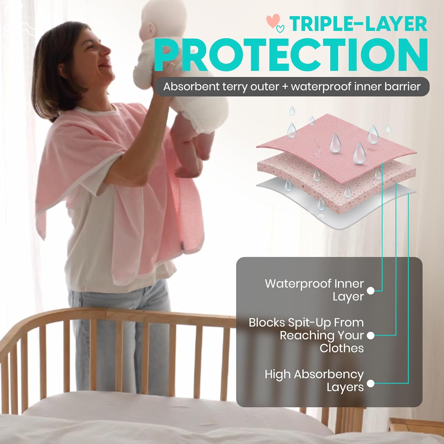 | Other Special Features of the Product | Wearable Design, Full Upper-Body Coverage, Adjustable 4-Button Strap, Dual-Layer Construction, Lightweight and Breathable Fabric, Washable and Reusable, Daycare-Ready, Newborn-Safe Material, Gift-Ready Packaging, One Size Fits All |