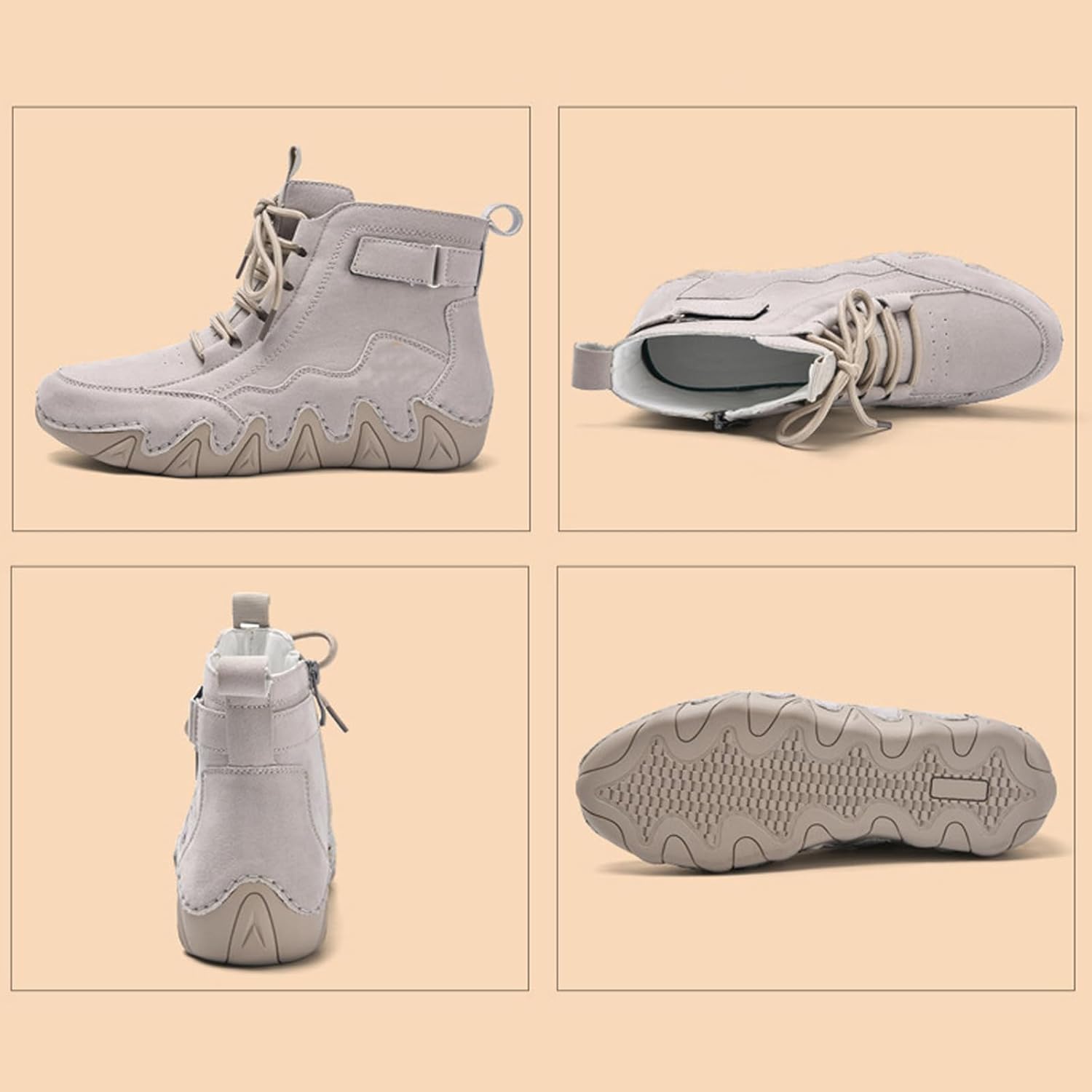 Product Description Women's Suede Lace-up Flat Handmade Short Boots 【Hand-sewn】-The upper and sole are made of high-quality hand-sewn, and the stitching is sturdy and durable. No matter where you go on an adventure, these women's hiking boots can easily cope with it. Color: Apricot, Brown Size: 4.5 US, 5 US, 6 US, 7 US, 8 US, 8.5 US, 9 US, 10 US, Upper Material: Leather Lining Material: Leather Sole Material: Rubber Sole Style: Women's Suede Lace-up Flat Handmade Short Boots Package Included: 1 * Women's Suede Lace-up Flat Handmade Short Boots Note: The product is handmade and the size may vary slightly. Due to shooting technology, light, different monitors an