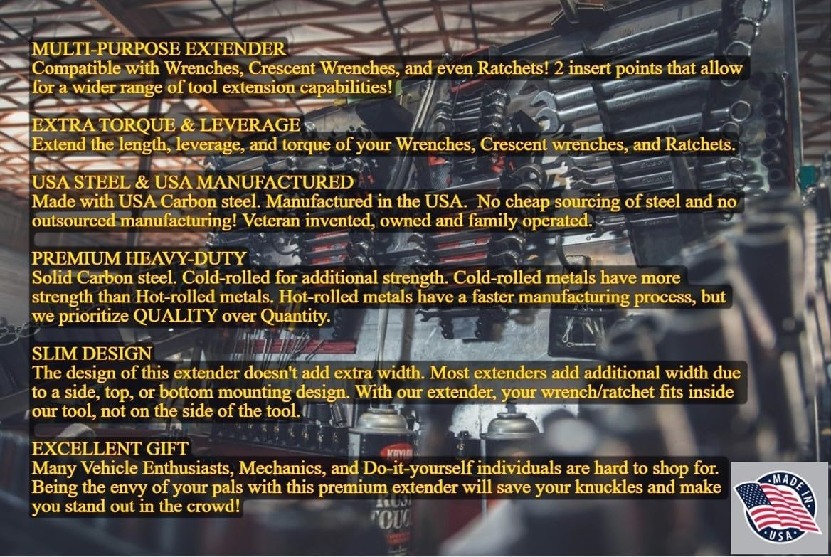 Wrench Extender Tool Bar for Maximum Leverage - Made in USA - Universal Extension Torque Multiplier - Mechanics, Vehicles, & Machine Repairs - Compatible with Wrenches, Crescents & Ratchets