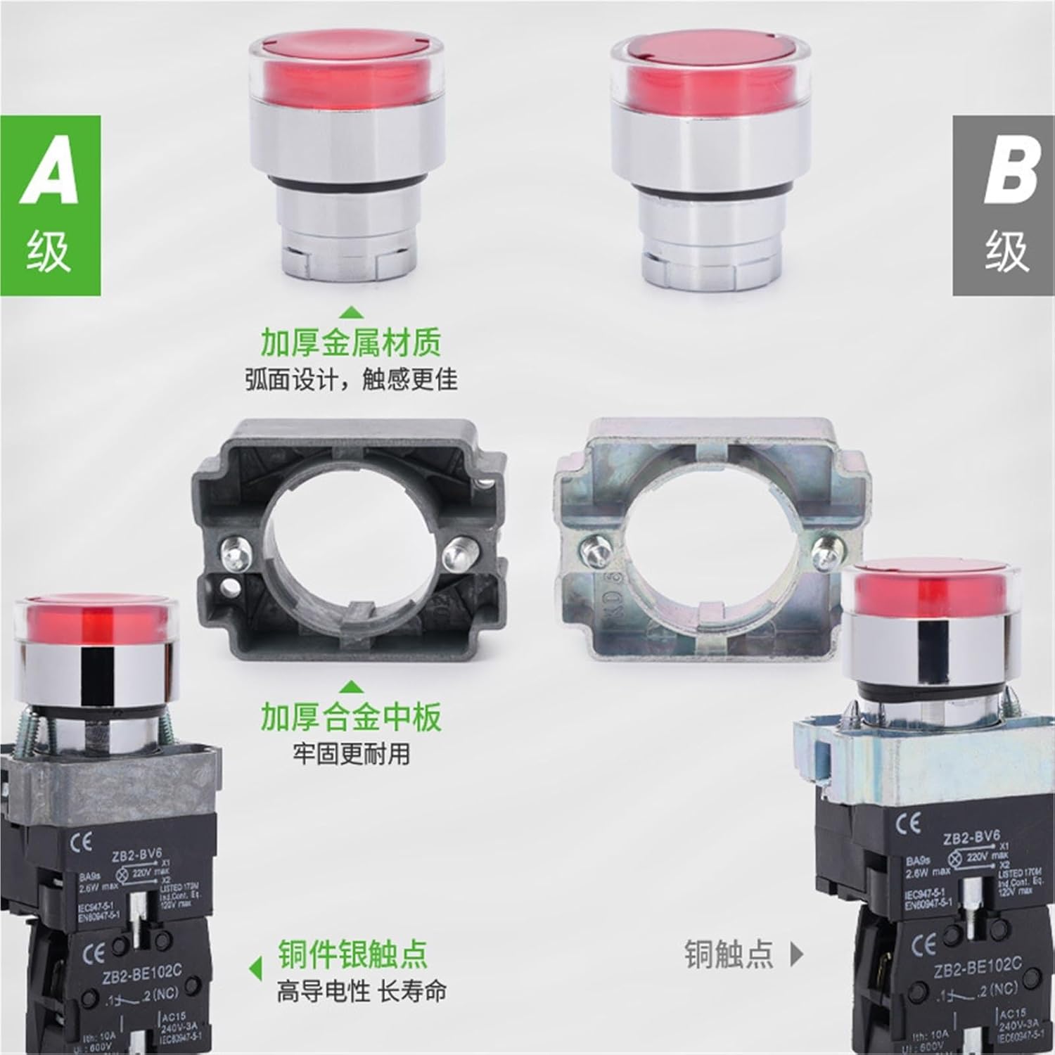 Knife SwitchesXB2-BW3361C Self Resetting BW33B1C BW33M1C Green/red Illuminated Button Switch 24V 220V 1Pcs