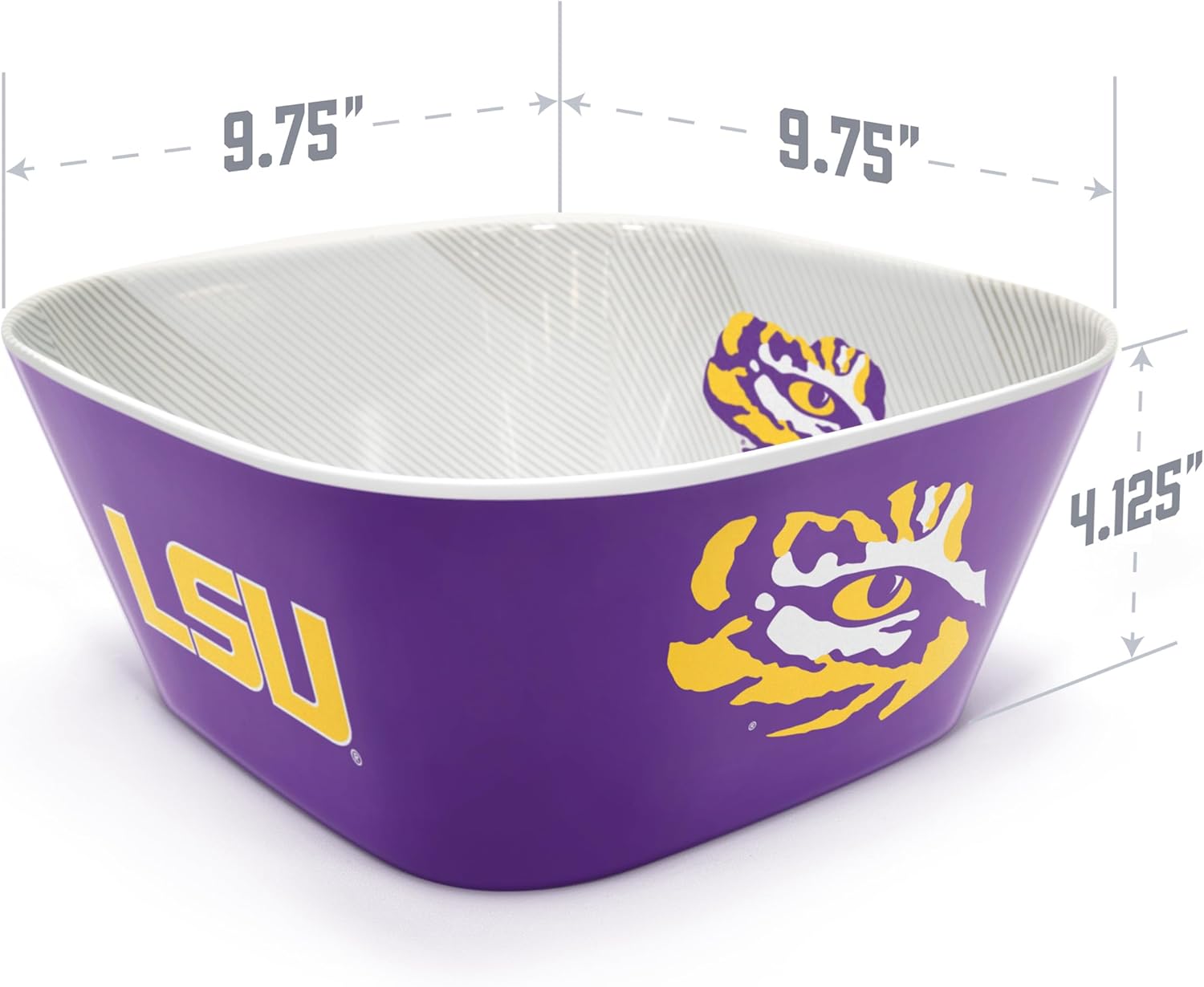 What are you bringing to the party? As long as you show up with your team’s logo snack bowl, it’s a win! This large, durable melamine bowl features your favorite team’s logos on the outside AND inside with a contemporary stripe pattern. So even when the snacks are gone, the bowl still looks great!
