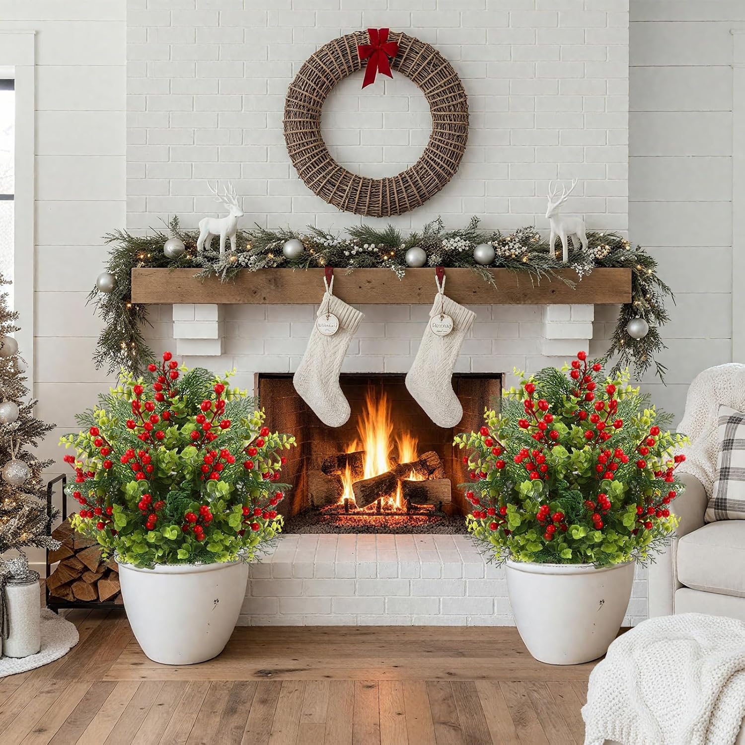 Features: These artificial topiary trees for outdoor no need to water or prune. They can save you time and energy. They require no maintenance and can show vitality all year round. These faux outdoor plants designed with a convenient ground spike, this UV resistant artificial topiary red berries tree is incredibly easy to set up. Simply place it in soil, a planter, or a decorative pot to instantly enhance your space with greenery that looks fresh year round. Specifications: Material: UV resistant Color: green, red Size: about 40 x 60 cm/16 x 24 inches Package includes: 2 x Artificial red berries trees with ground spike Notes: Manual measurement, please allow slight errors on size. The color may exist a slight difference due to different screen displays
